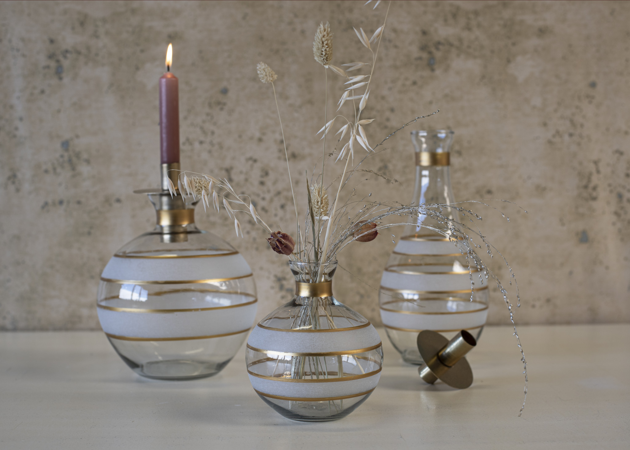 Les vases porte-bougies sont parfaits pour combiner différentes tailles sur la table. Pourquoi ne pas en placer un avec une bougie et un autre avec une fleur ? Plus il y en a, mieux c'est! Vous pouvez également les associer avec nos supports de bougies en cire et nos bougies parfumées pour un effet spectaculaire sur votre table.