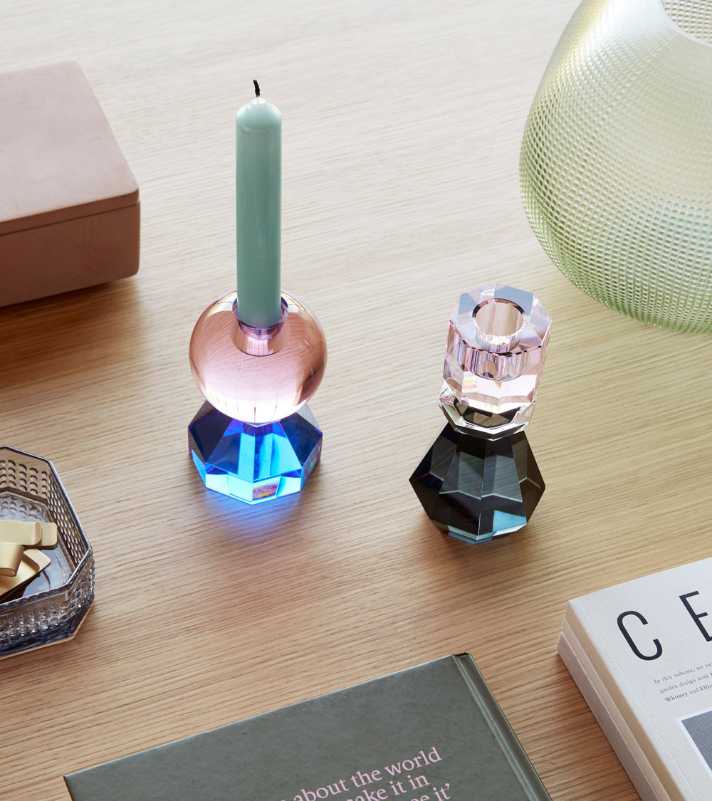 Bougeoir en cristal rose/gris fumé - Ø 7 cm x H 14 cm