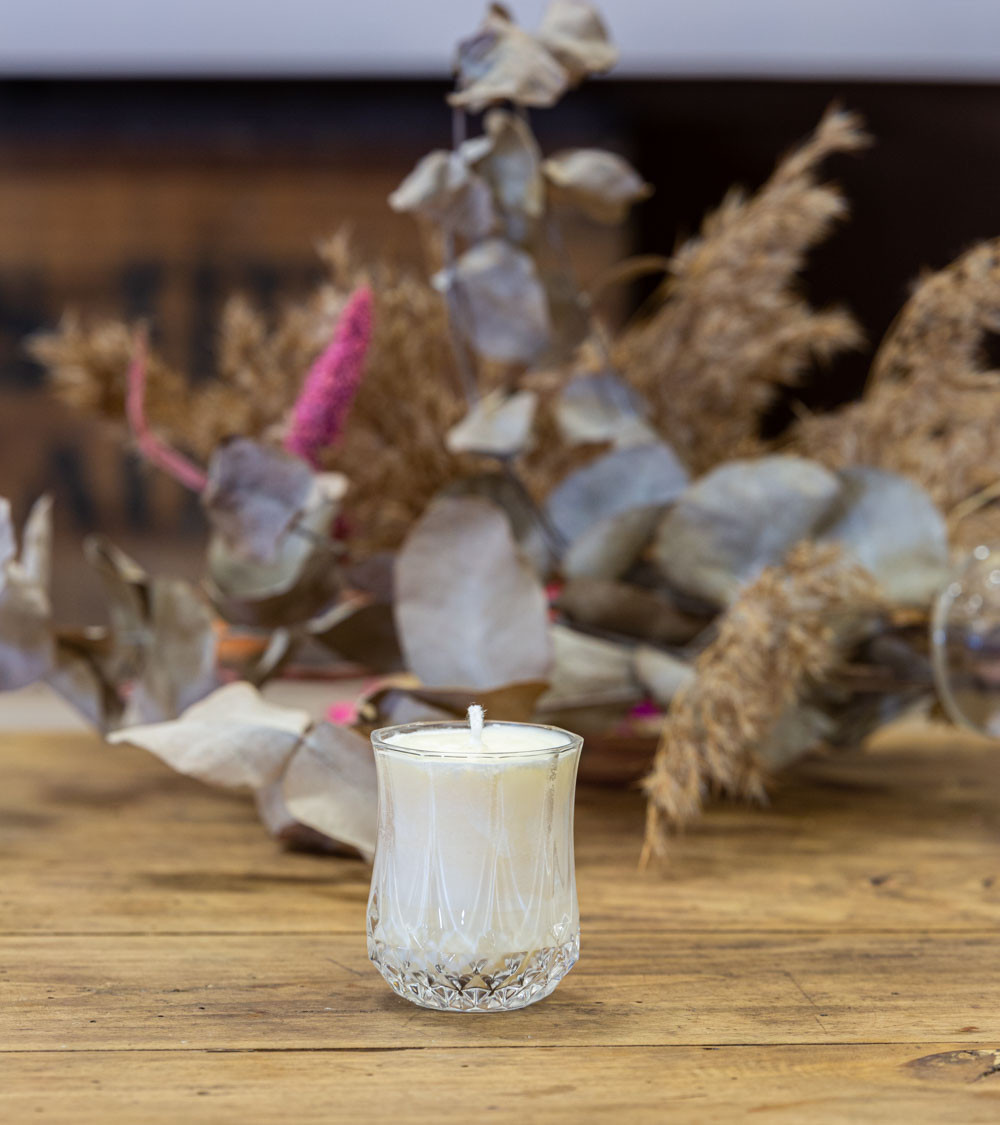 Bougie verre à liqueur upcyclé "Roméline" - Collection nature