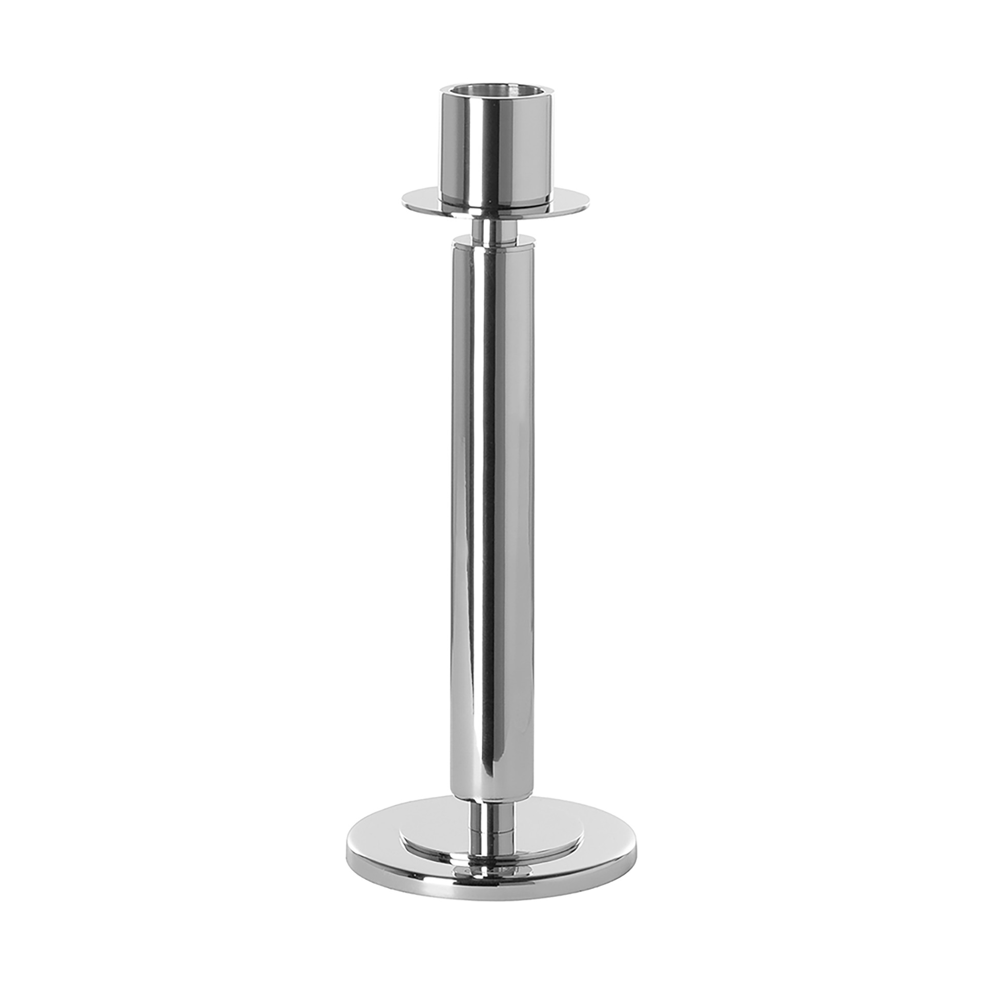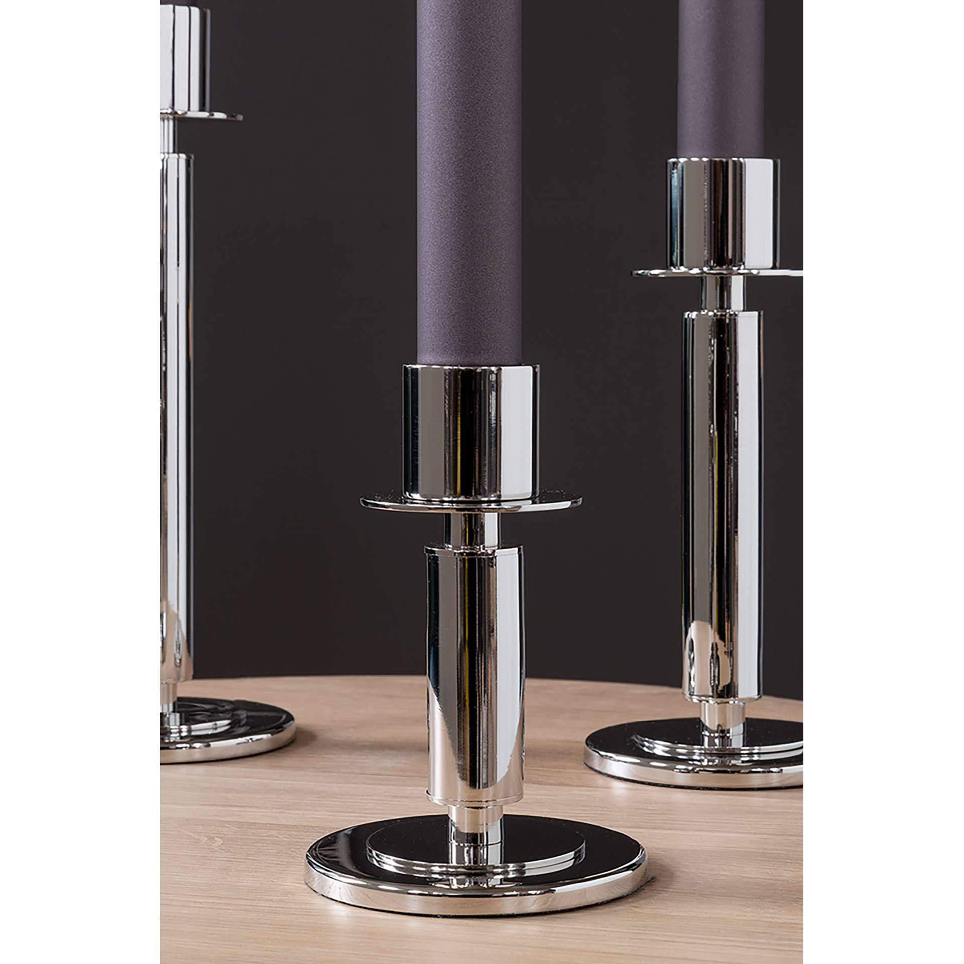 Fabriqué en acier et aluminium nickelé avec une finition lisse couleur argent, ce chandelier de 25,5 cm de hauteur est conçu pour des bougies de 3 cm de diamètre. Son design sobre et raffiné en fait un choix idéal pour sublimer une table ou une étagère. Avec ses lignes épurées et sa brillance subtile, le chandelier TALIS s'intègre parfaitement dans les intérieurs modernes ou classiques, créant une ambiance lumineuse et sophistiquée.