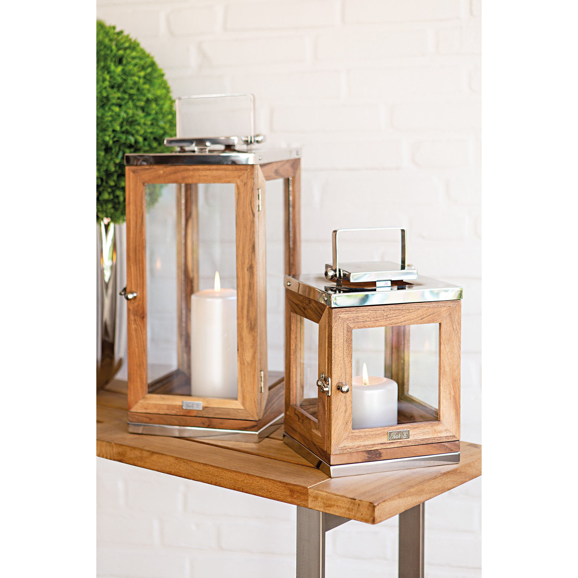 Conçue à partir de bois d’acacia de haute qualité, cette lanterne révèle toute la beauté de ses grains riches et de ses variations naturelles. Chaque pièce est unique, offrant une teinte et une texture singulières. Le bois chaleureux s’allie à des éléments en acier inoxydable brillant, qui ajoutent un contraste moderne et élégant.