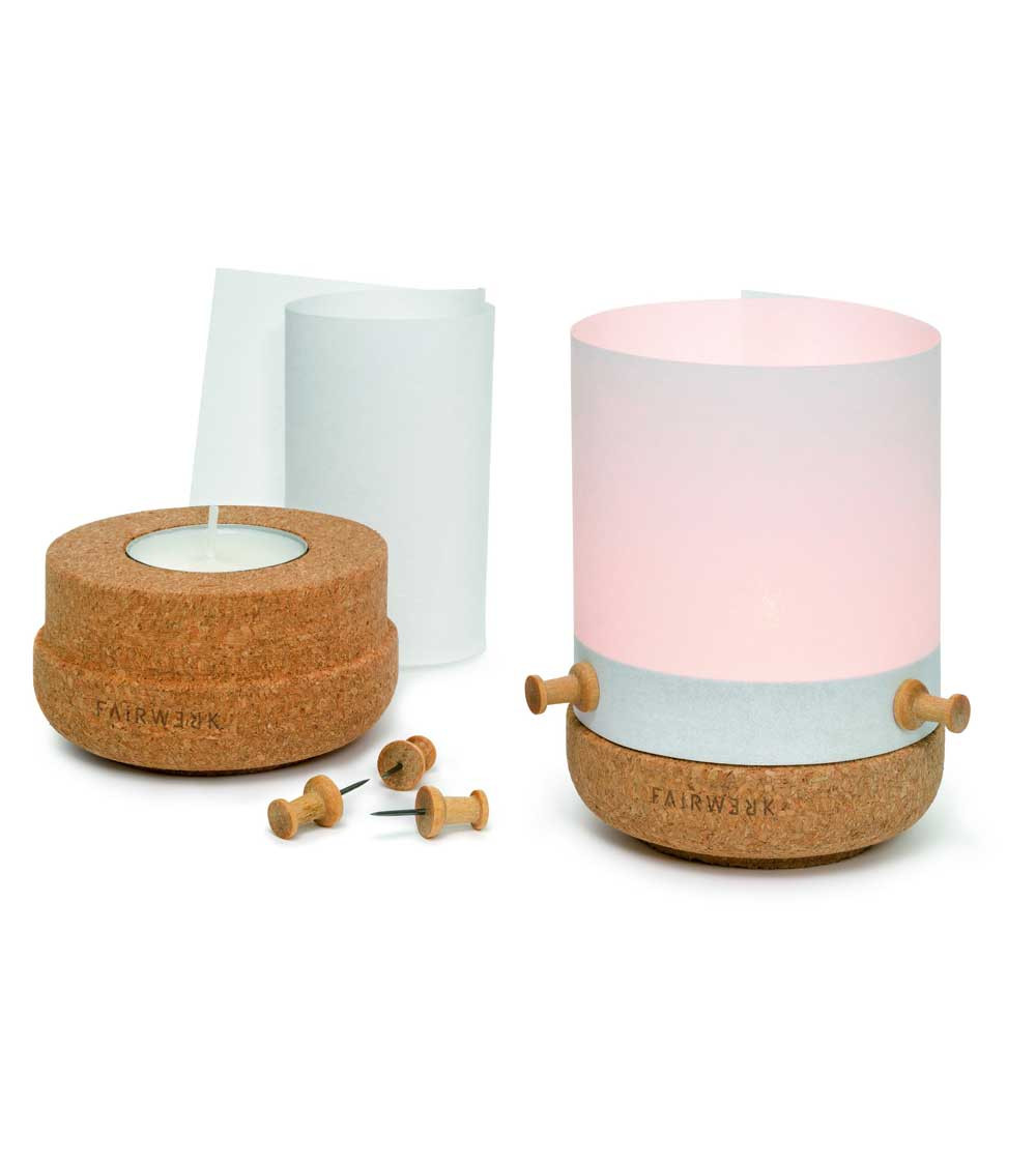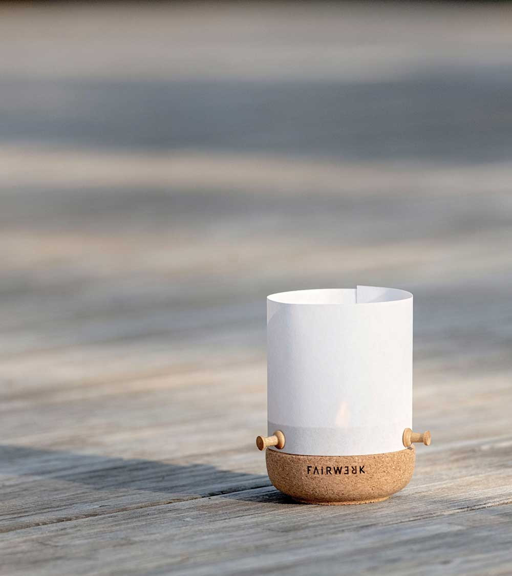 La Lanterne Pinnlicht de Fairwerk est bien plus qu'un simple photophore. Fabriquée en liège naturel, elle invite à la créativité grâce à son manchon en papier ignifuge que vous pouvez personnaliser.