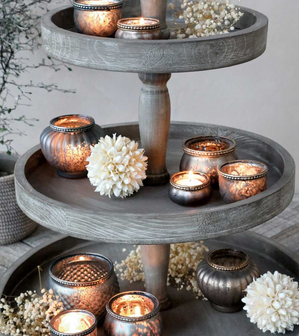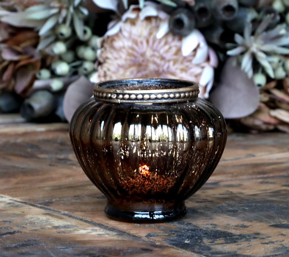 Conçu pour une bougie chauffe-plat, ce photophore transforme une simple flamme en un jeu de reflets hypnotiques grâce à sa finition antique mocha. Ce ton riche et profond accentue son caractère vintage tout en s’harmonisant avec divers styles de décoration. Que vous préfériez une ambiance bohème, scandinave ou traditionnelle, ce photophore devient un véritable point focal dans votre pièce.