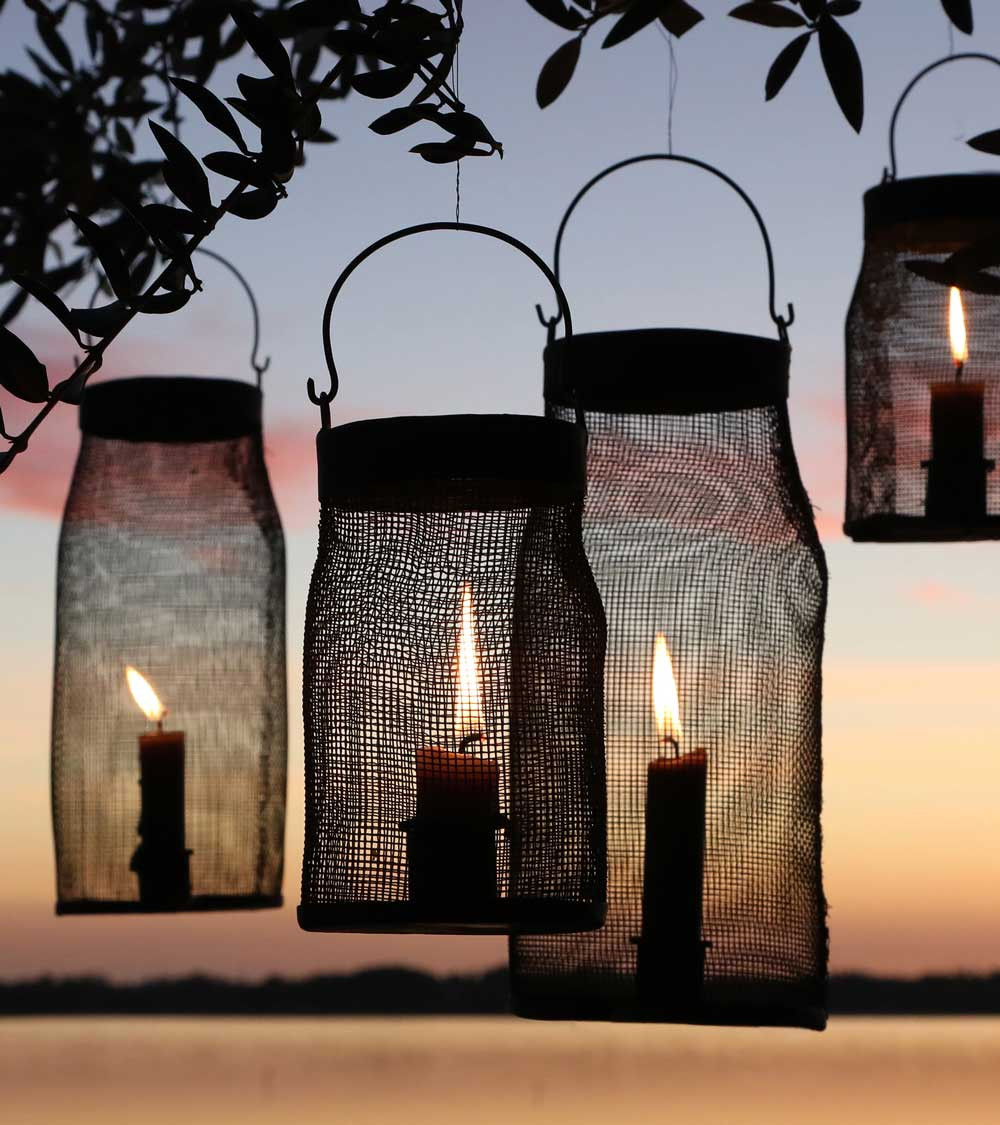 Photophore / Bougeoir avec maillage fer - H 13,5 cm
