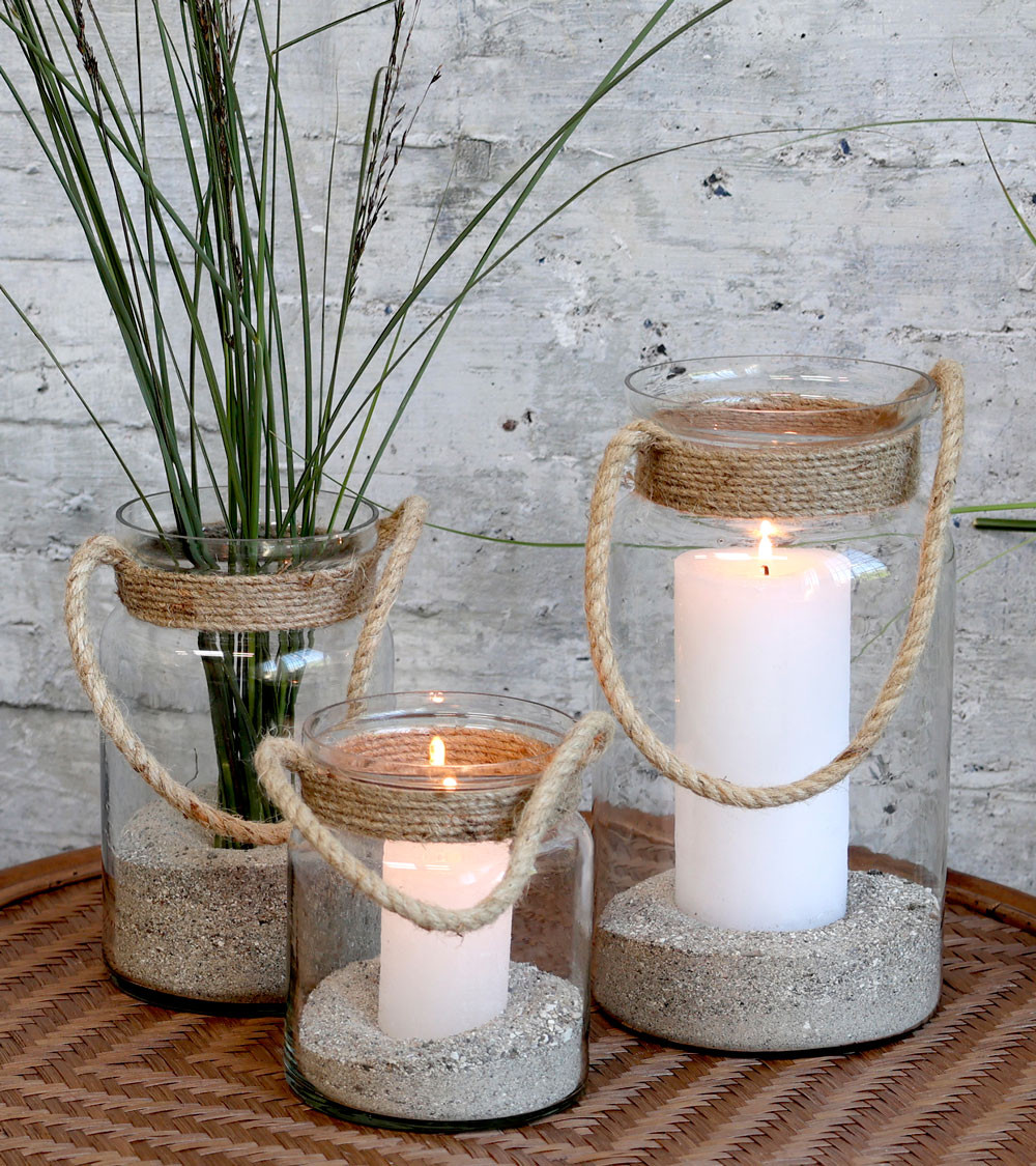 Photophore avec corde en jute - H 19,5 cm